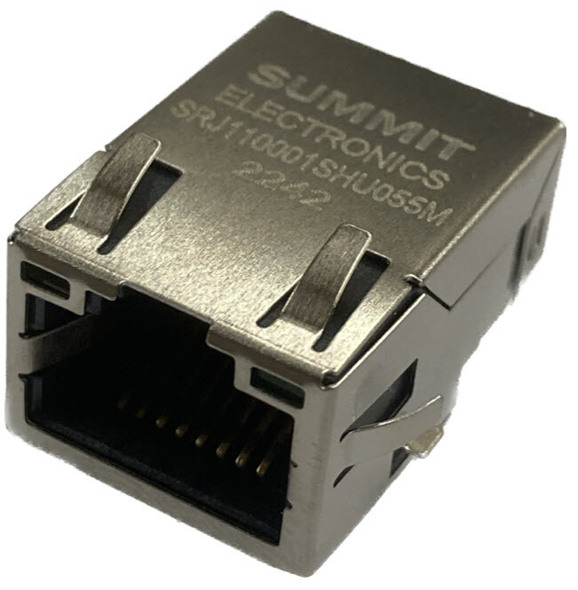 SRJ110001SHU055M RJ45 LAN Transformer 10/100 Base-T Latch : Tab UP Number of ports : single 1x1 Application-LAN : Ethernet ( NON PoE). PIN type : SMT solder LED option : Yellow / Green Led's