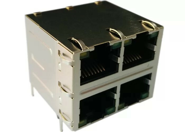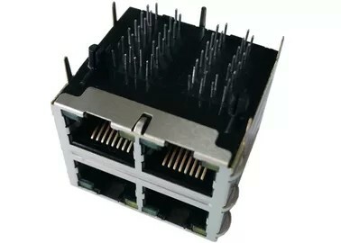 The SRJ202010020 is a RJ45 connector with 2x2 ports, supports speeds up to 10/100 Base-T and is executed with magnetics, EMI Tabs and LED (Green / Green)
